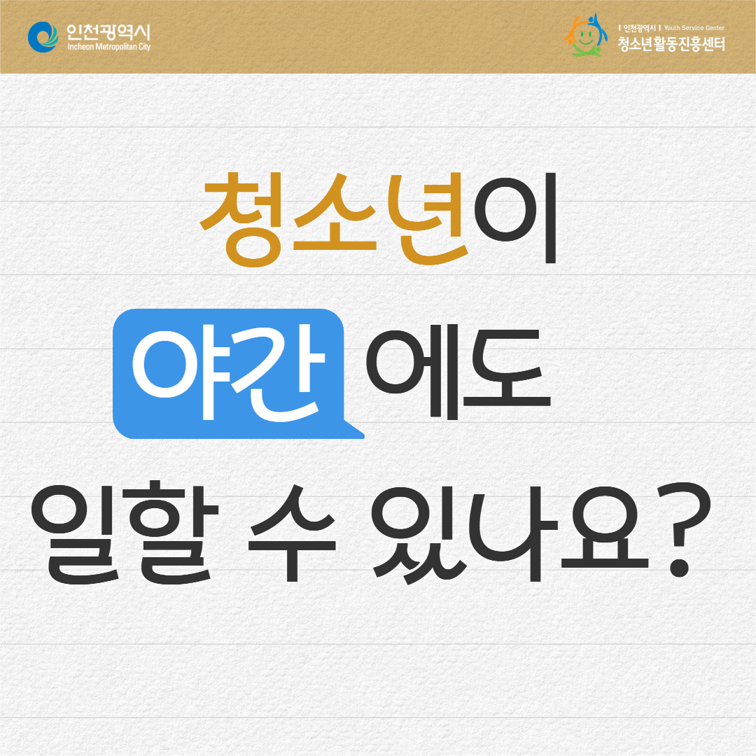 만 18세 미만의 청소년은 오후 10시~오전 6시까지는 근로할 수 없습니다.