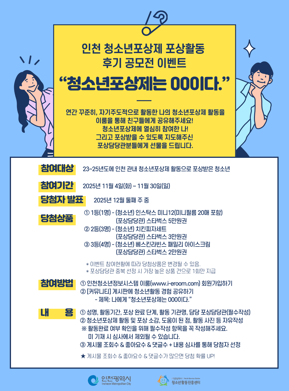 [이벤트] 인천 청소년포상제 후기 공모전 결과발표!