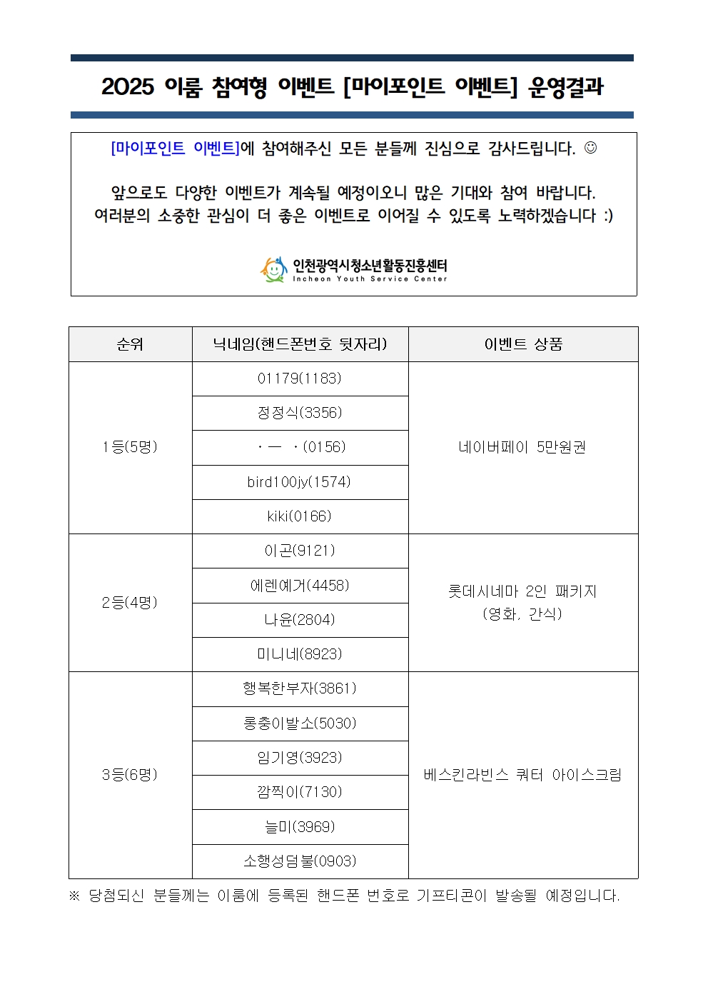 [이벤트] 인천 청소년포상제 후기 공모전 결과발표!