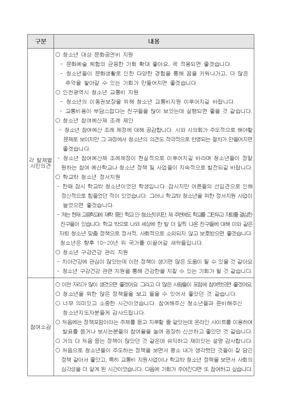 [2022] 제7회 인천광역시 청소년정책포럼 질의에 대한 답변