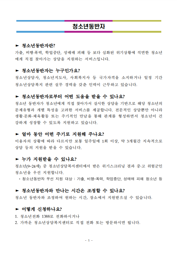 청소년 동반자란? 청소년 동반자는 누구인가요? 청소년동반자로부터 어떤 도움을 받을 수 있나요? 등