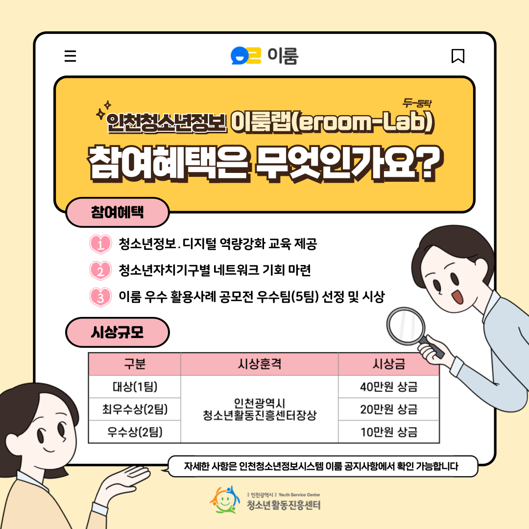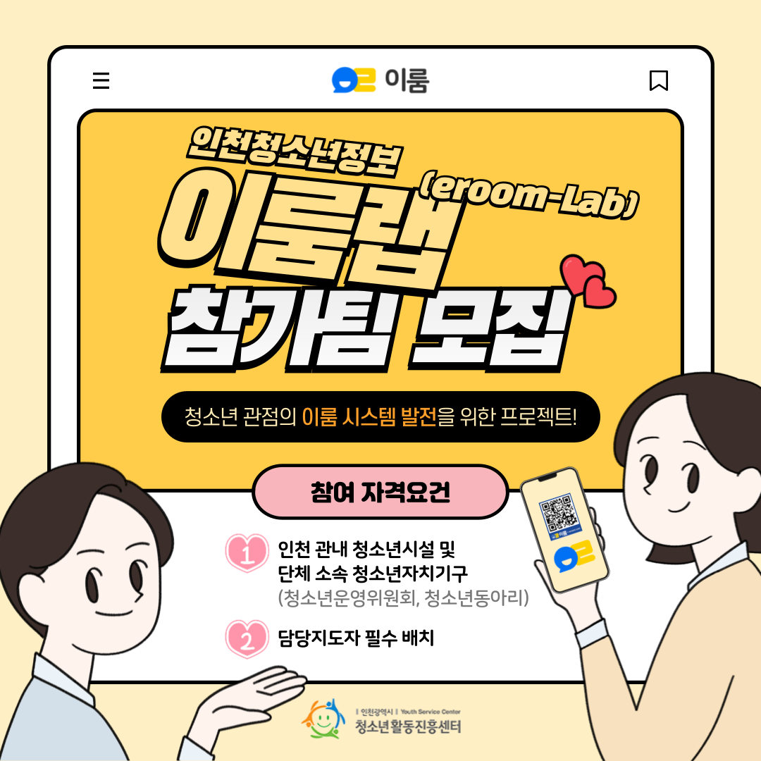 2025 인천청소년정보 [이룸랩(eroom-Lab)] 참가팀 모집!