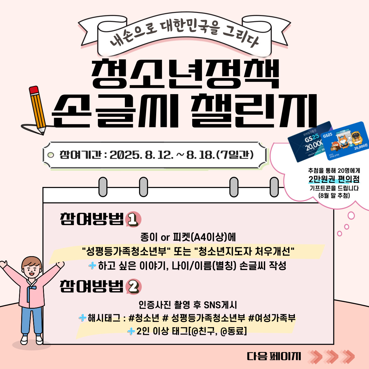 내 손으로 대한민국을 그리는 [청소년정책 손글씨 챌린지]를 운영하고 있습니다.