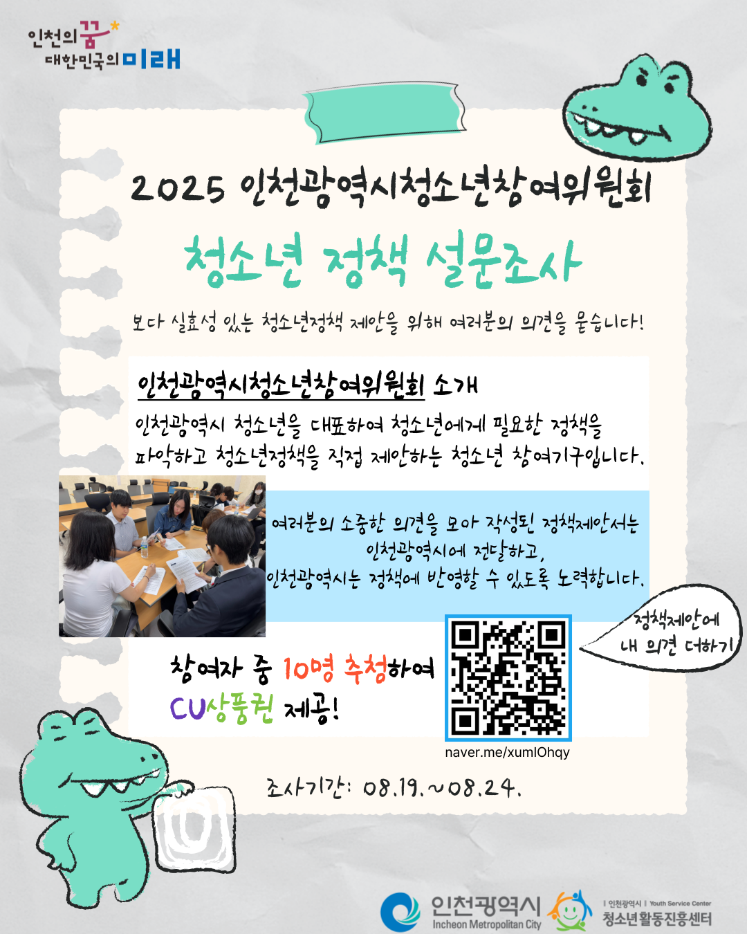 [인천광역시청소년활동진흥센터] 2025 인천광역시청소년참여위원회 청소년 정책 설문조사