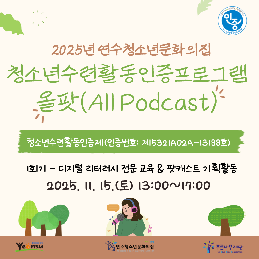 #연수구 #연수청소년문화의집 #연수구청 #인천 #인천광역시 #연수마디센터 #푸른나무재단 #btf #청예단 #청소년문화의집 #청소년 #청소년활동 #맛집 #youth #청소년수련활동인증제 #청소년수련활동인증프로그램 #올팟 #팟캐스트 #미디어리터러시 #캔바 #미디어습관