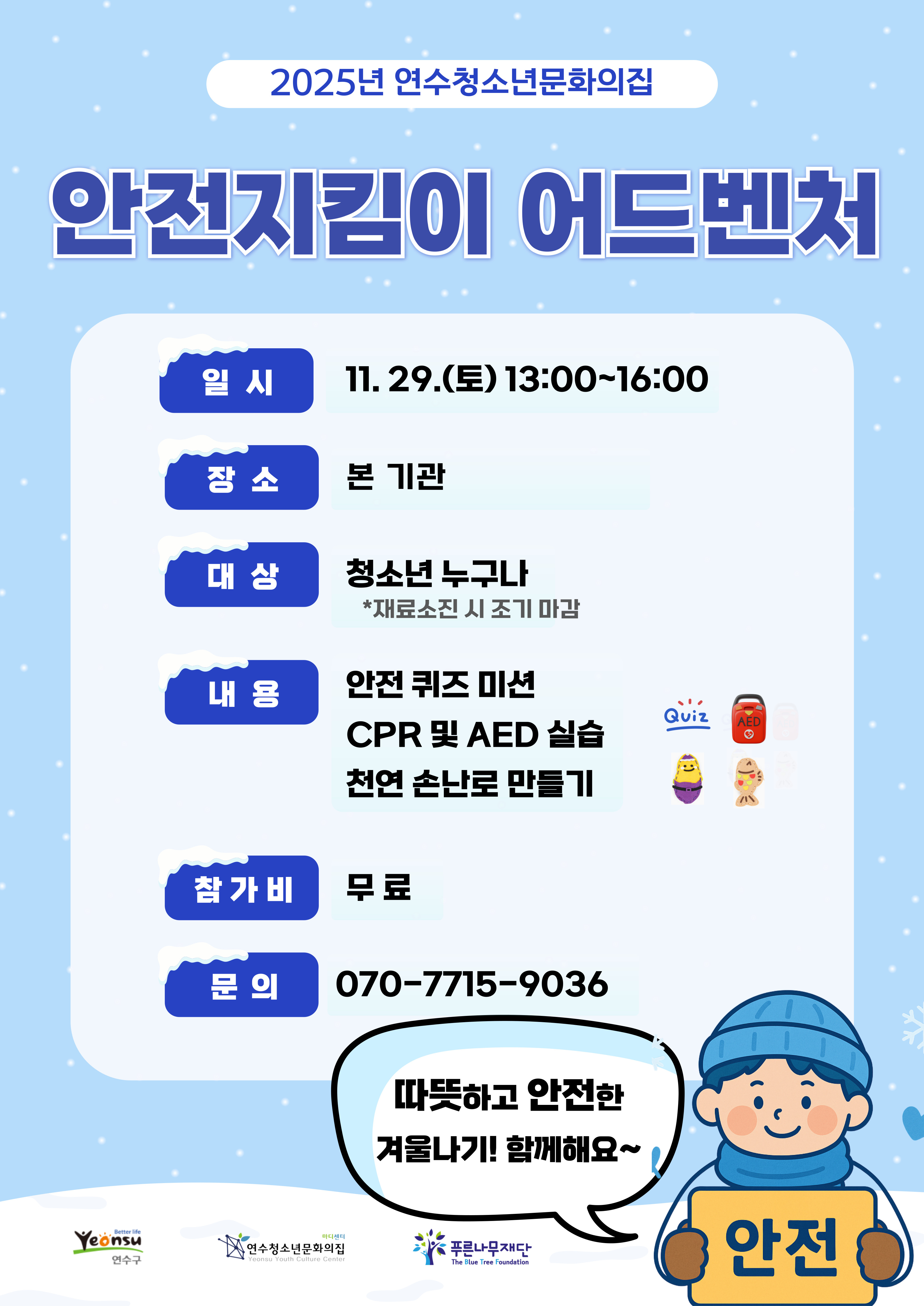 [연수청소년문화의집] 겨울을 지켜라! 2025년 안전지킴이 어드벤처 탐험대 모집!