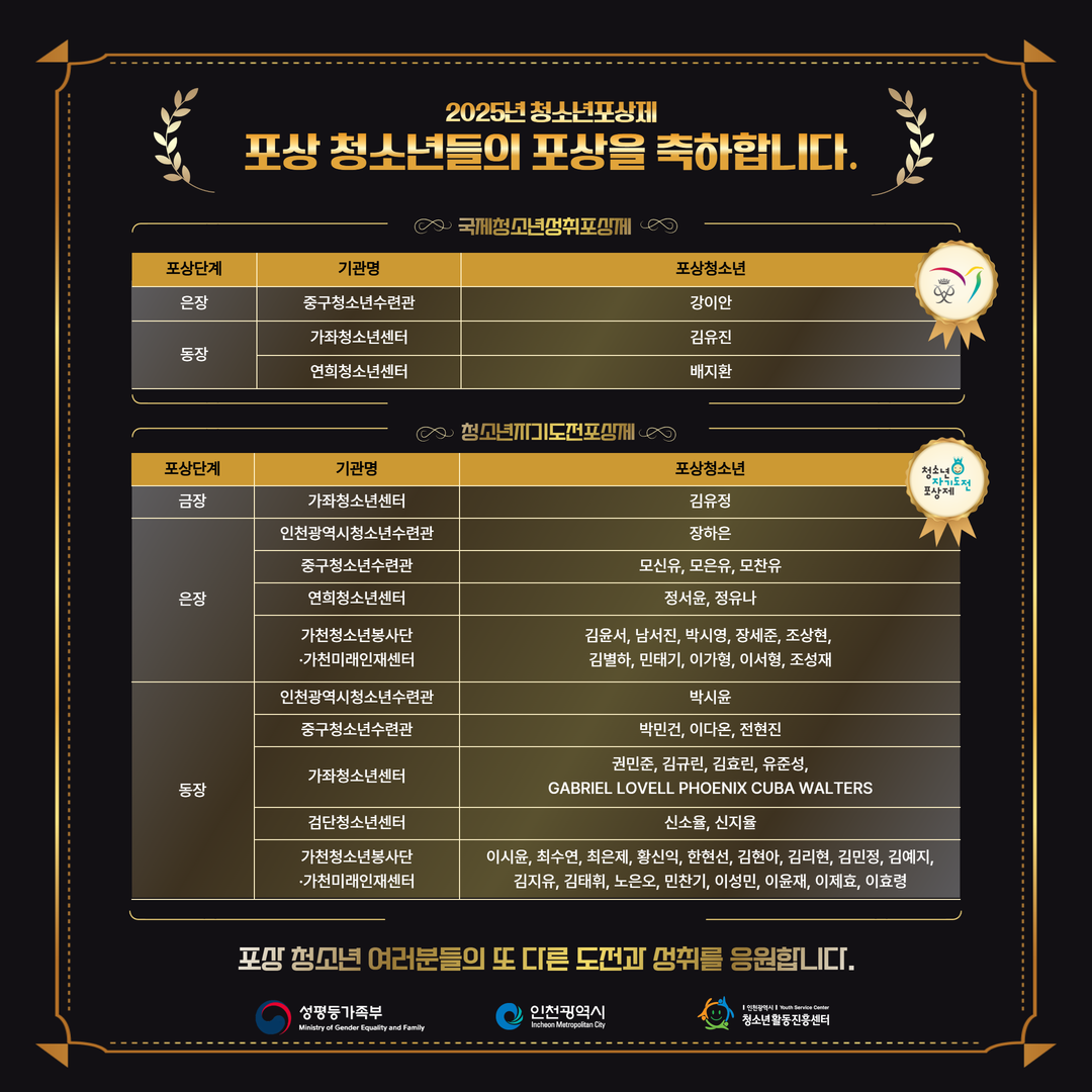 다시한번 포상청소년들의 포상을 진심으로 축하드립니다!