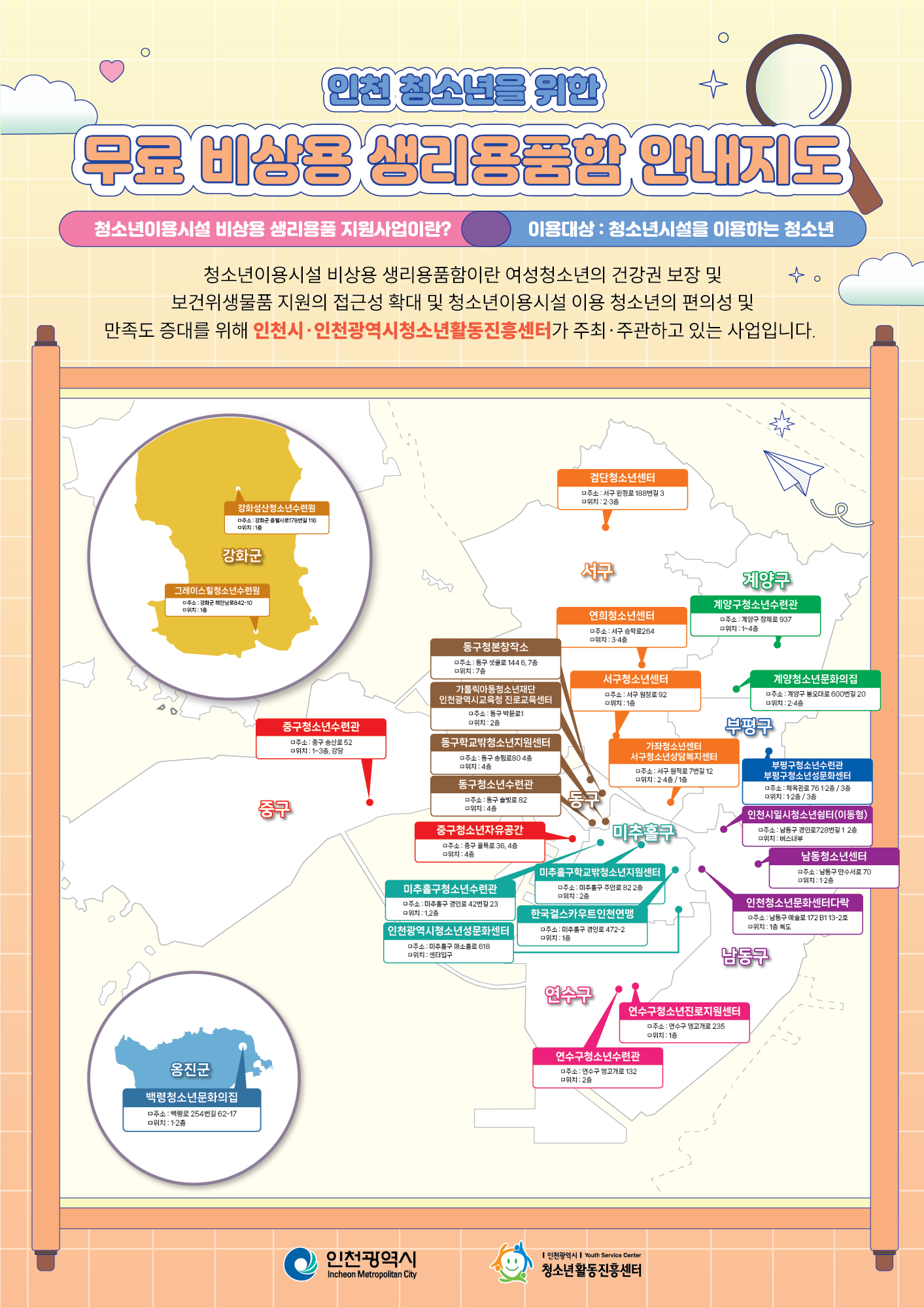 ※ 본사업은 여성청소년의 건강권 및 행복권 증진을 위해 추진되는 사업으로 인천광역시와 인천광역시청소년활동진흥센터가 주최·주관하여 운영하고있습니다.