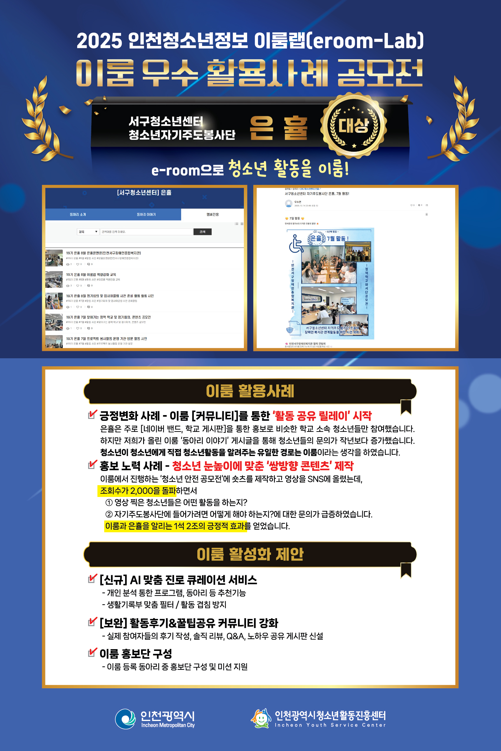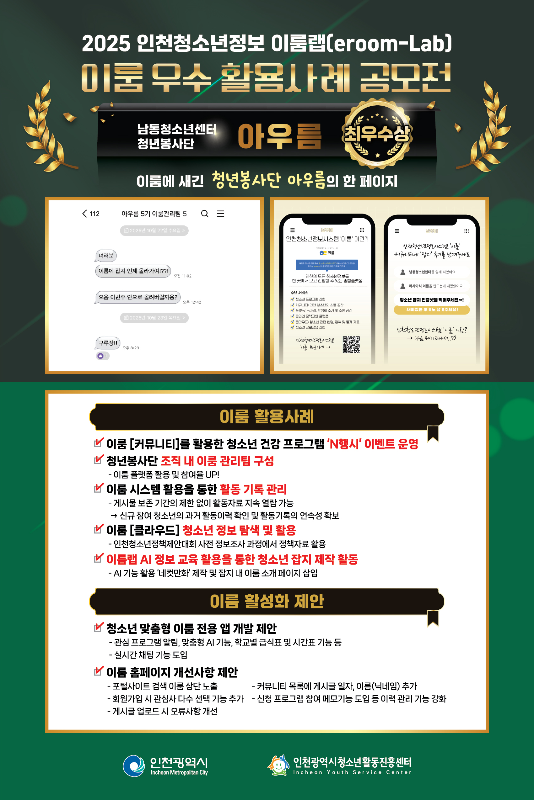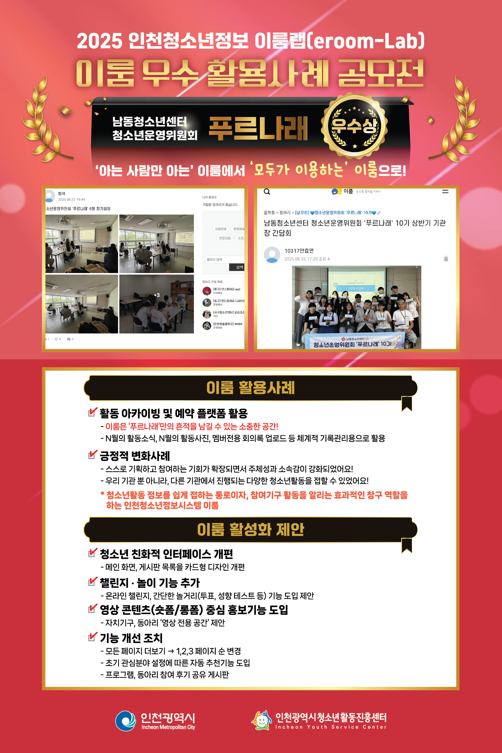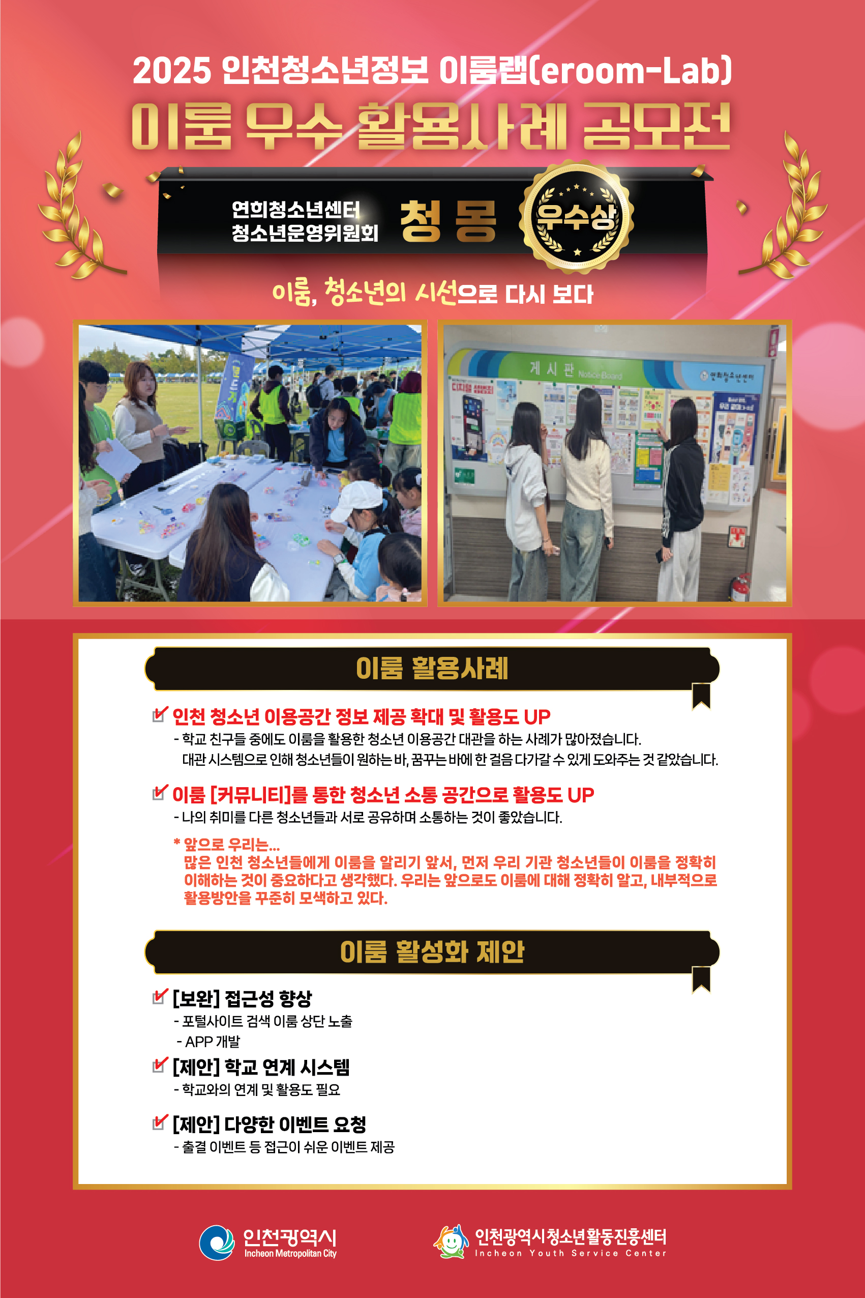 [인천광역시청소년활동진흥센터] 2025 이룸랩(eroom-Lab) 공모전 수상결과 확인하기!