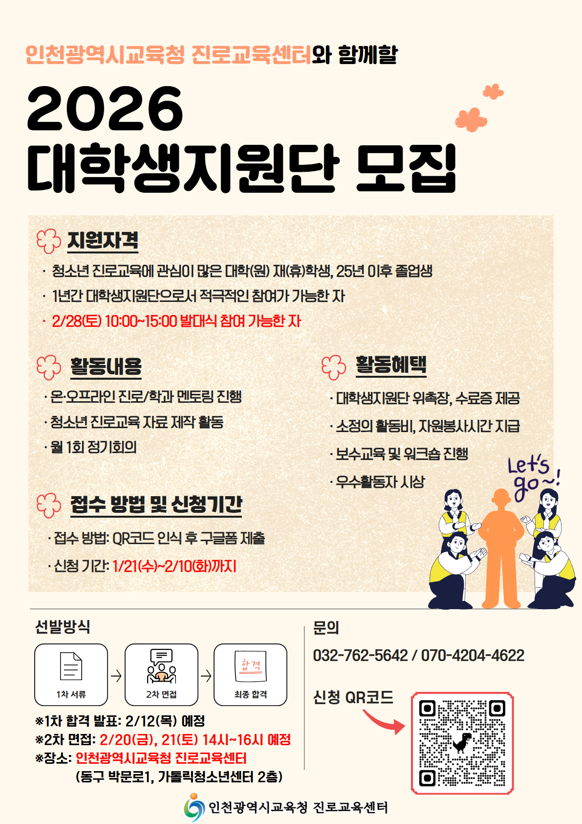 [인천광역시교육청 진로교육센터] 2026년 대학생지원단 10기 모집 안내