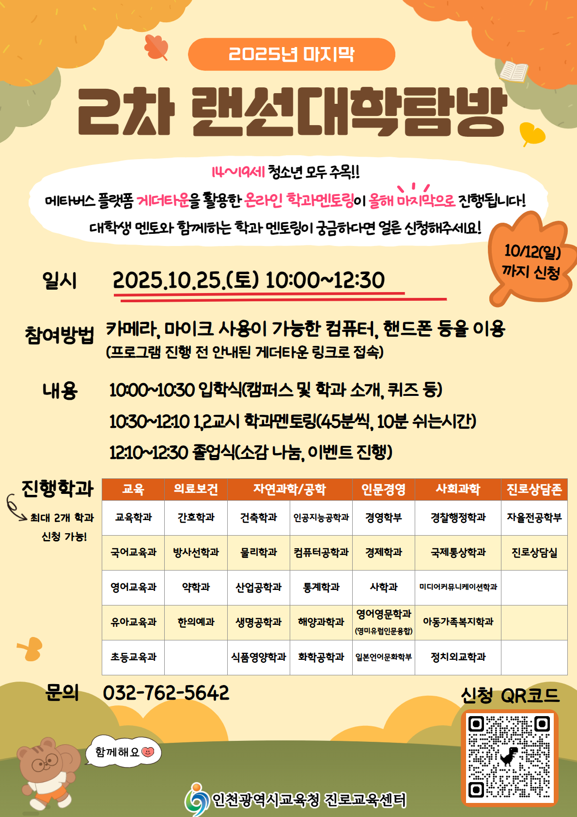 '2025년 2차 랜선대학탐방' 많은 관심과 신청 부탁드립니다^^