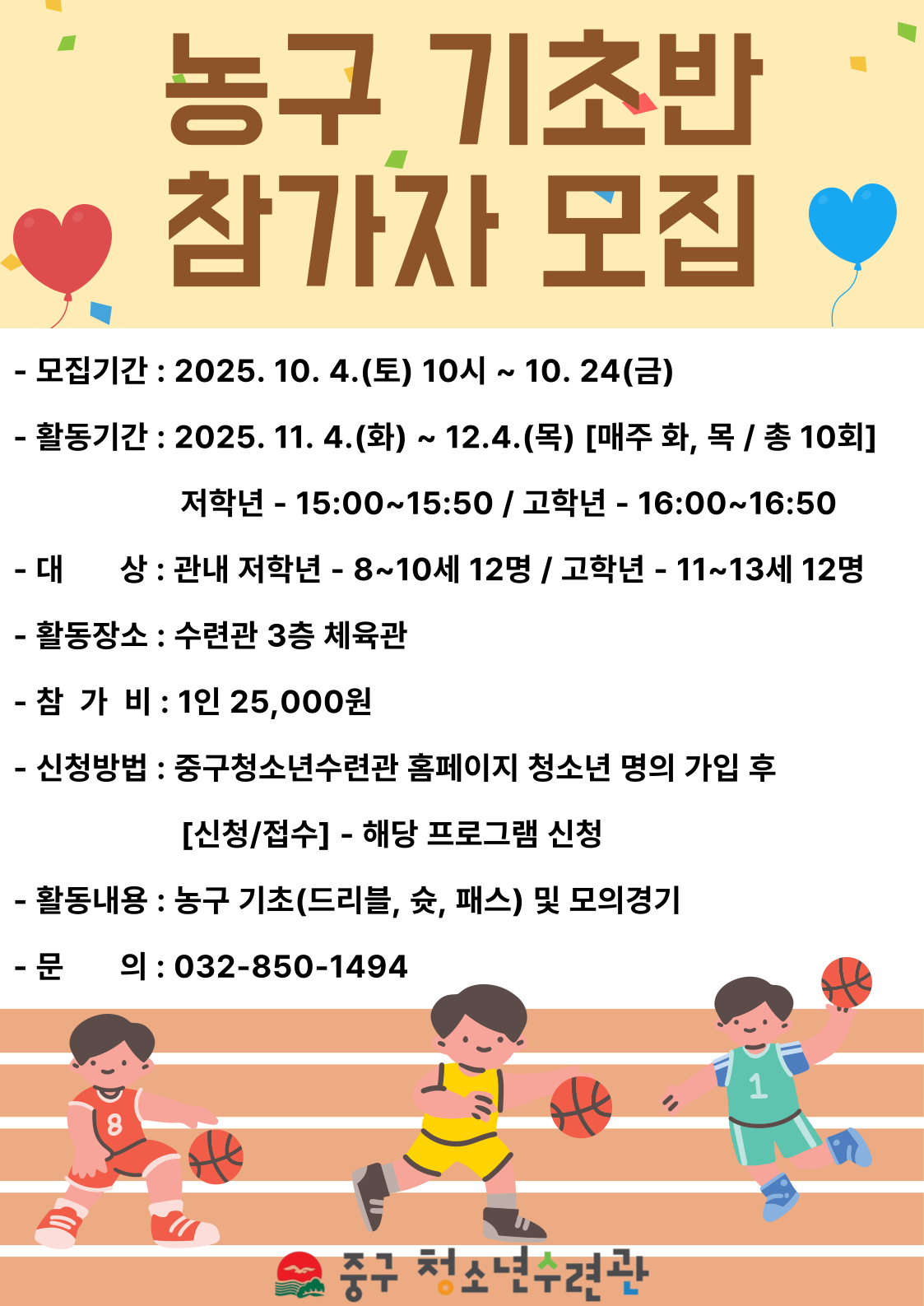 농구 프로그램 기초반 참가자 모집