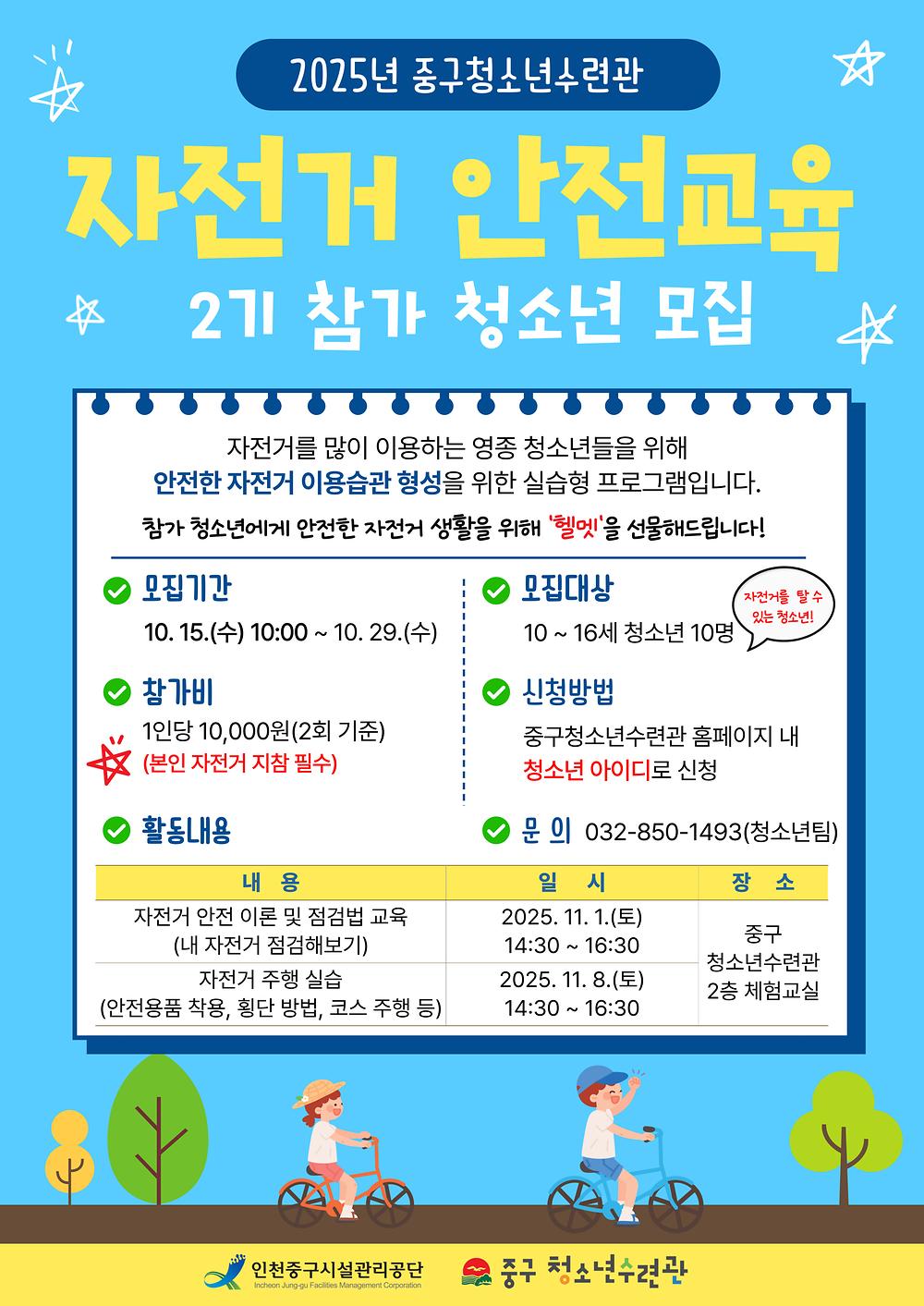 중구청소년수련관 4기 문화&스포츠 아카데미 참가자 모집