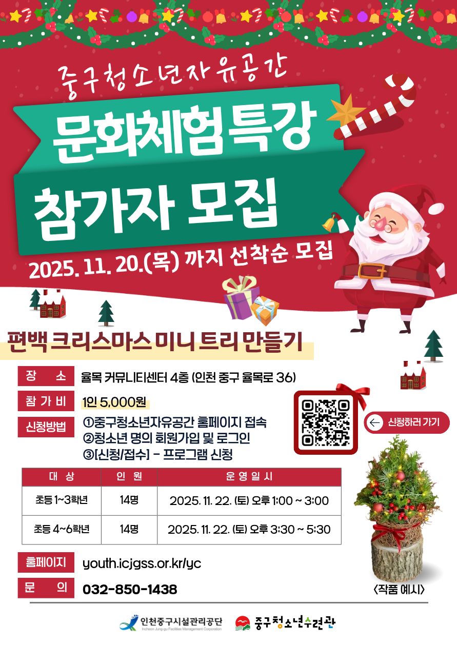 [중구청소년자유공간]11월 문화체험 특강<편백 크리스마스 미니 트리 만들기>참가자 모집