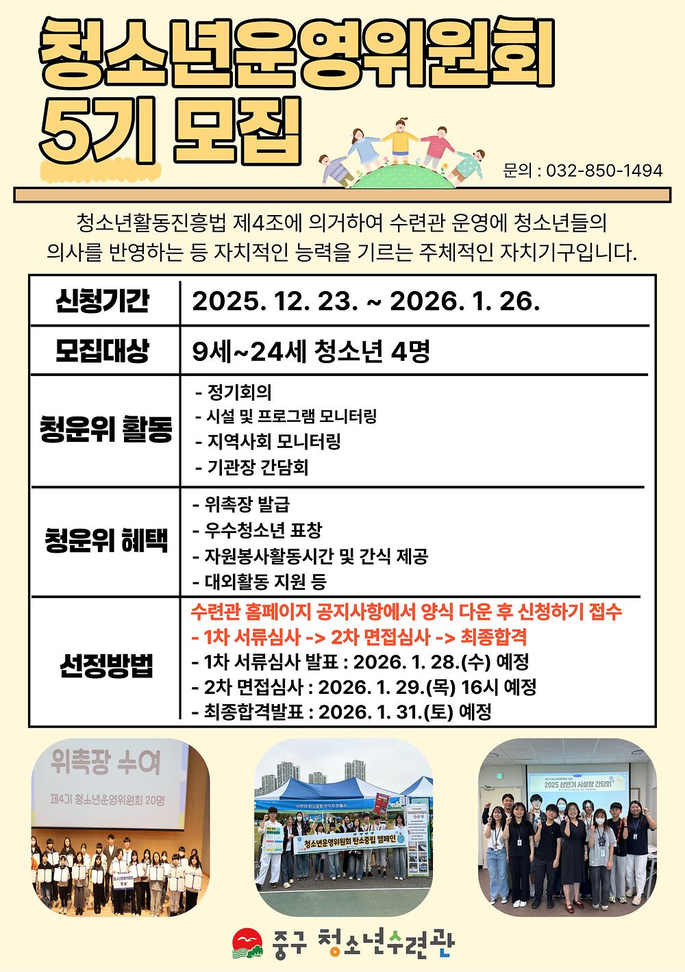 중구청소년수련관의 신규 동아리 (5팀)을 모집하오니 많은 관심과 신청 부탁드립니다~!