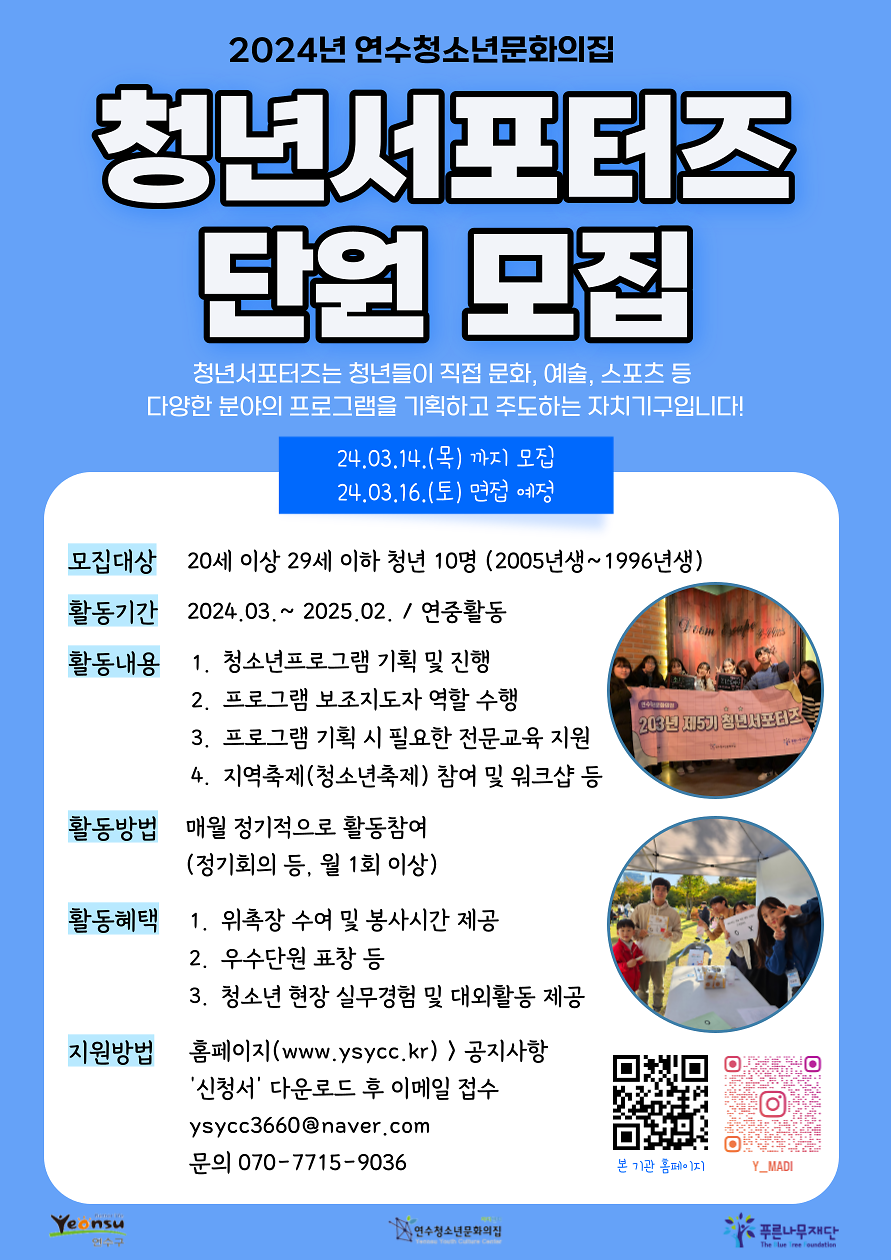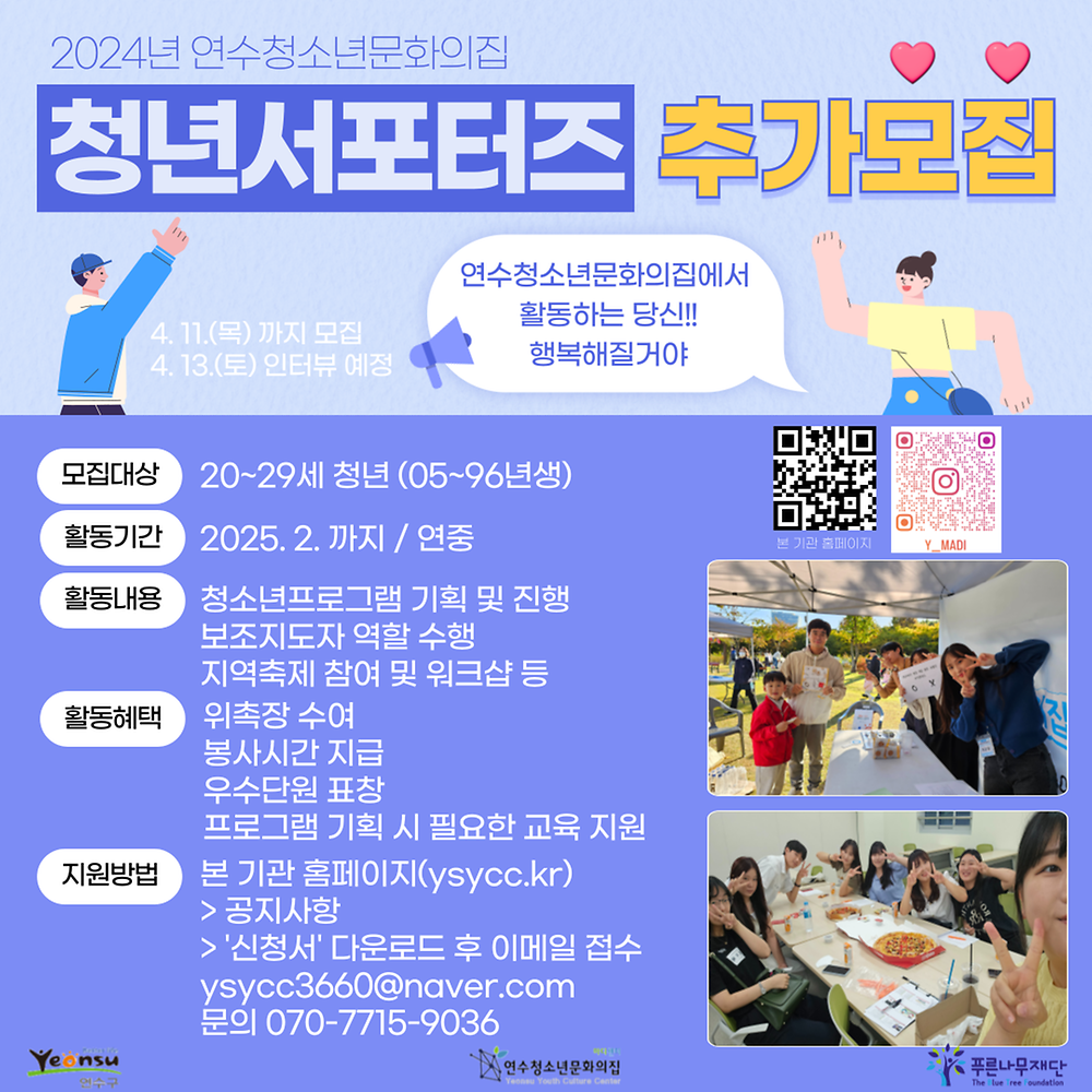 [연수청소년문화의집] 2024년 청년서포터즈 단원 추가 모집