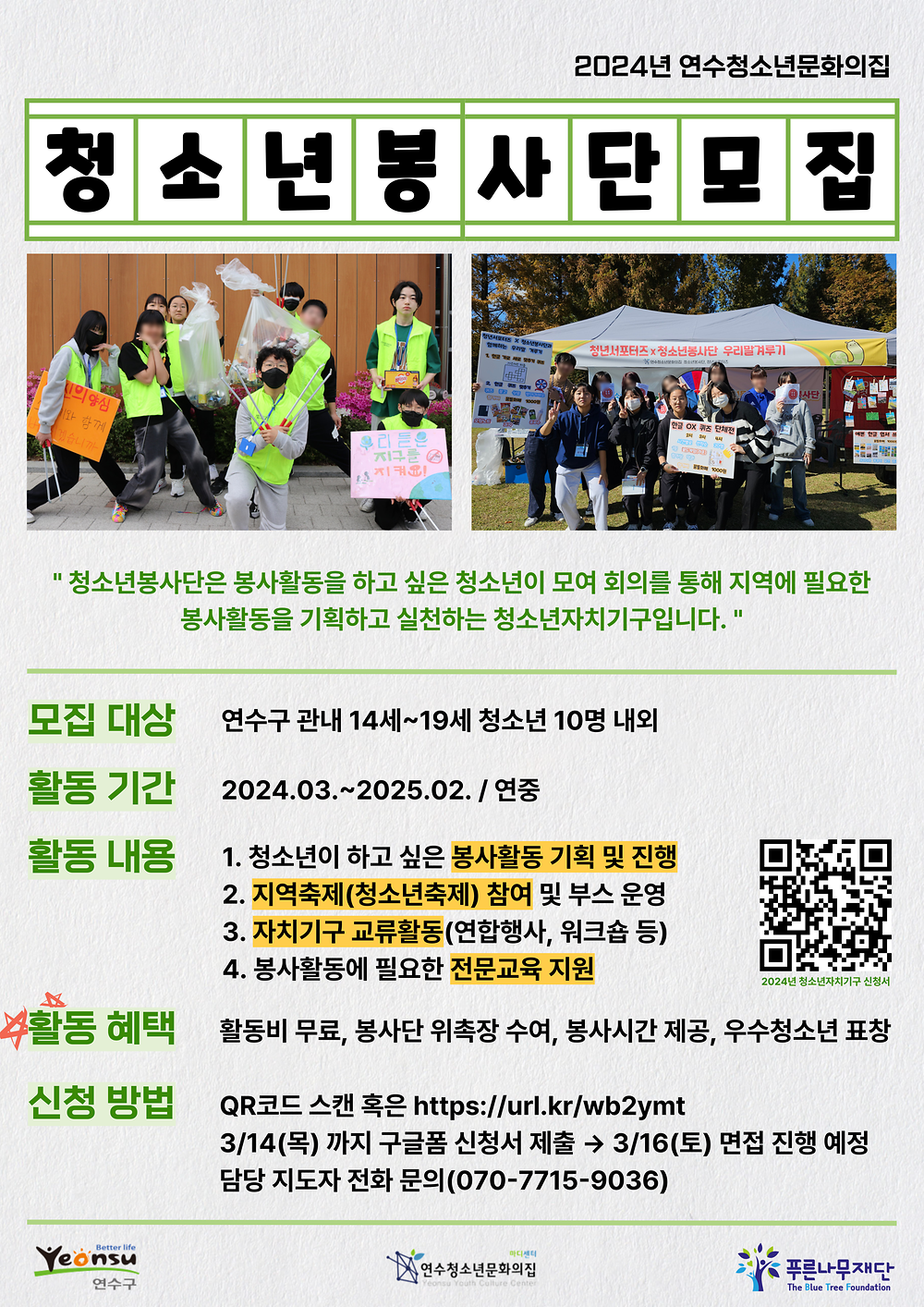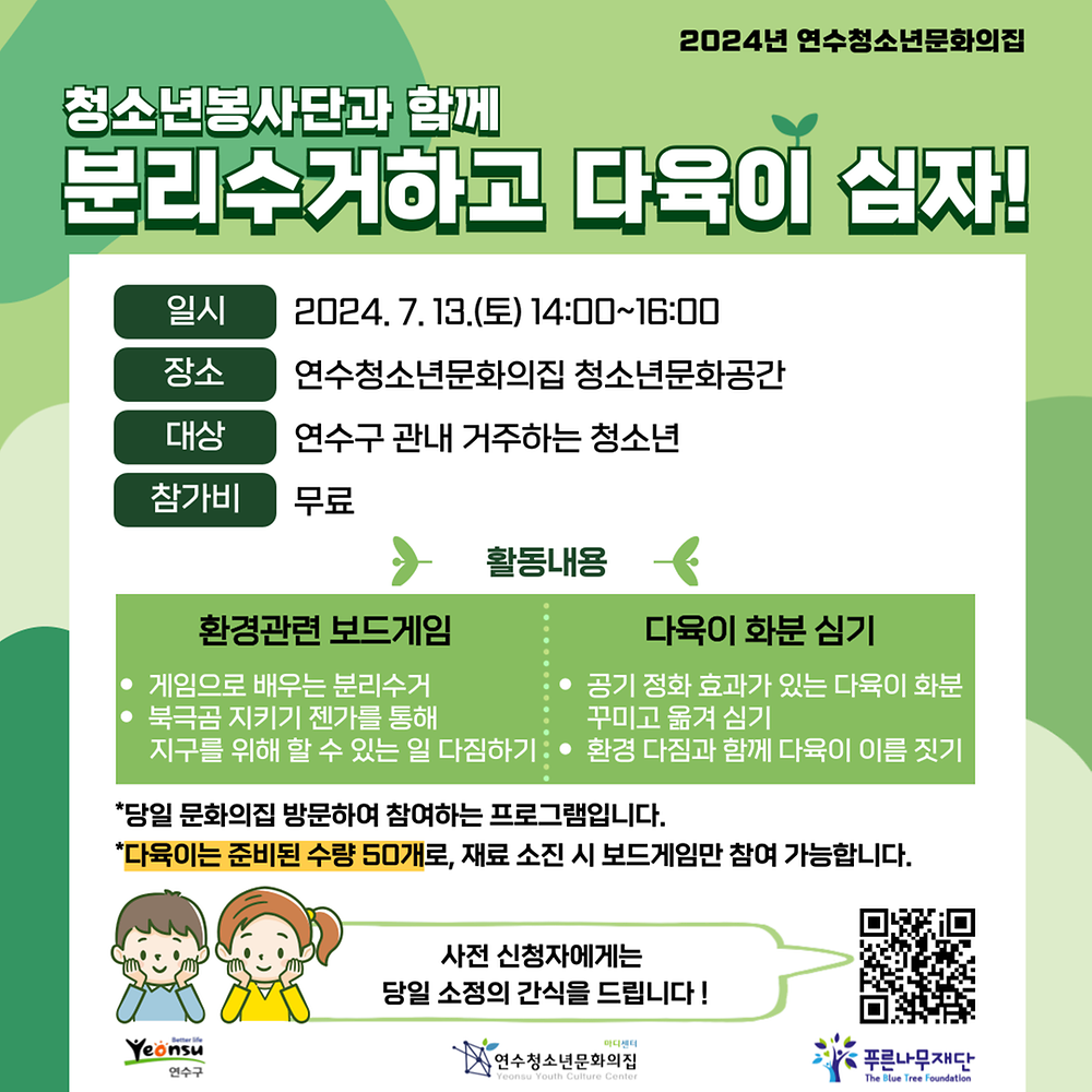 [연수청소년문화의집] 2024년 청소년봉사단 단원 추가 모집