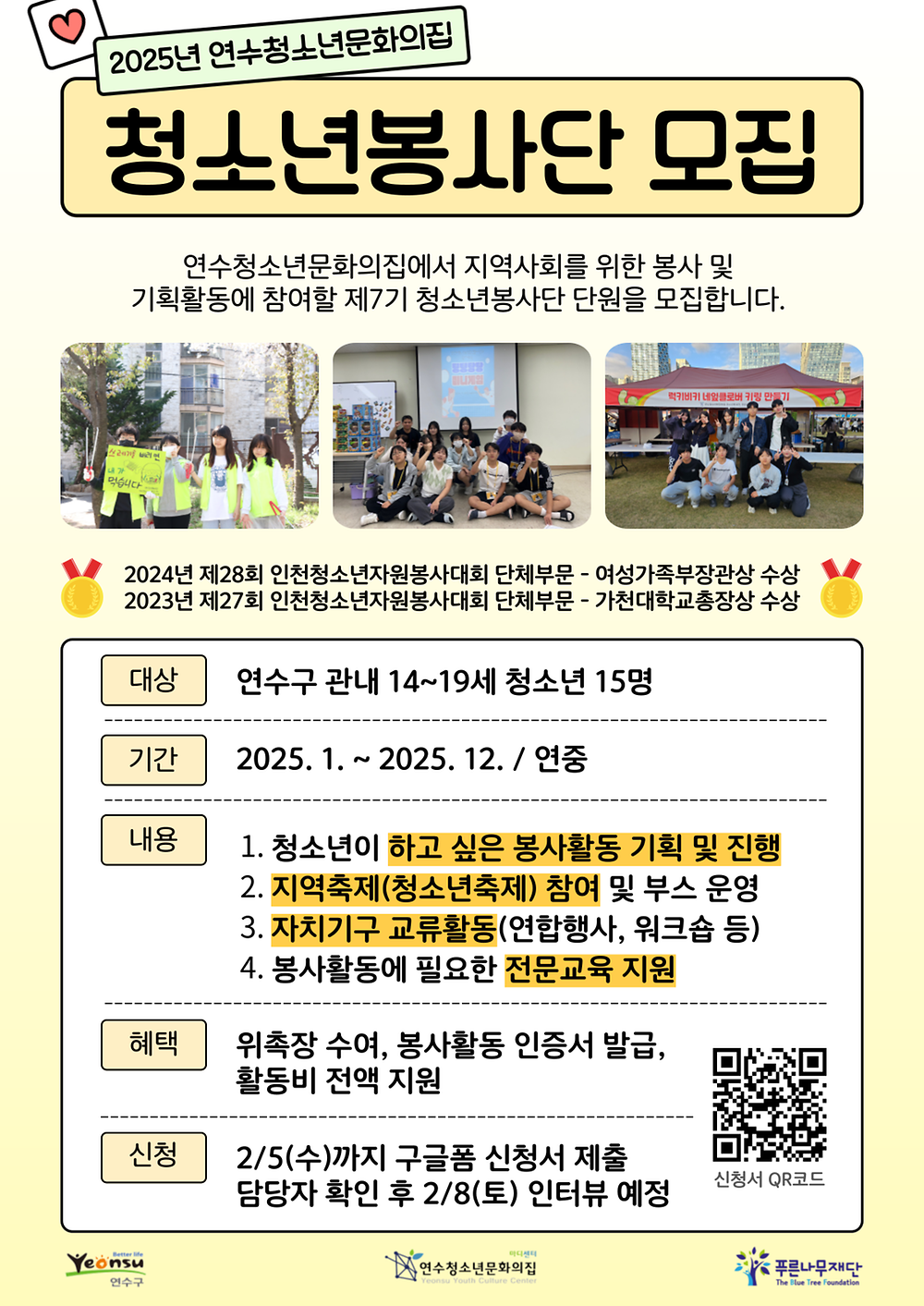 [연수청소년문화의집] 2025년 제7기 청소년봉사단 모집