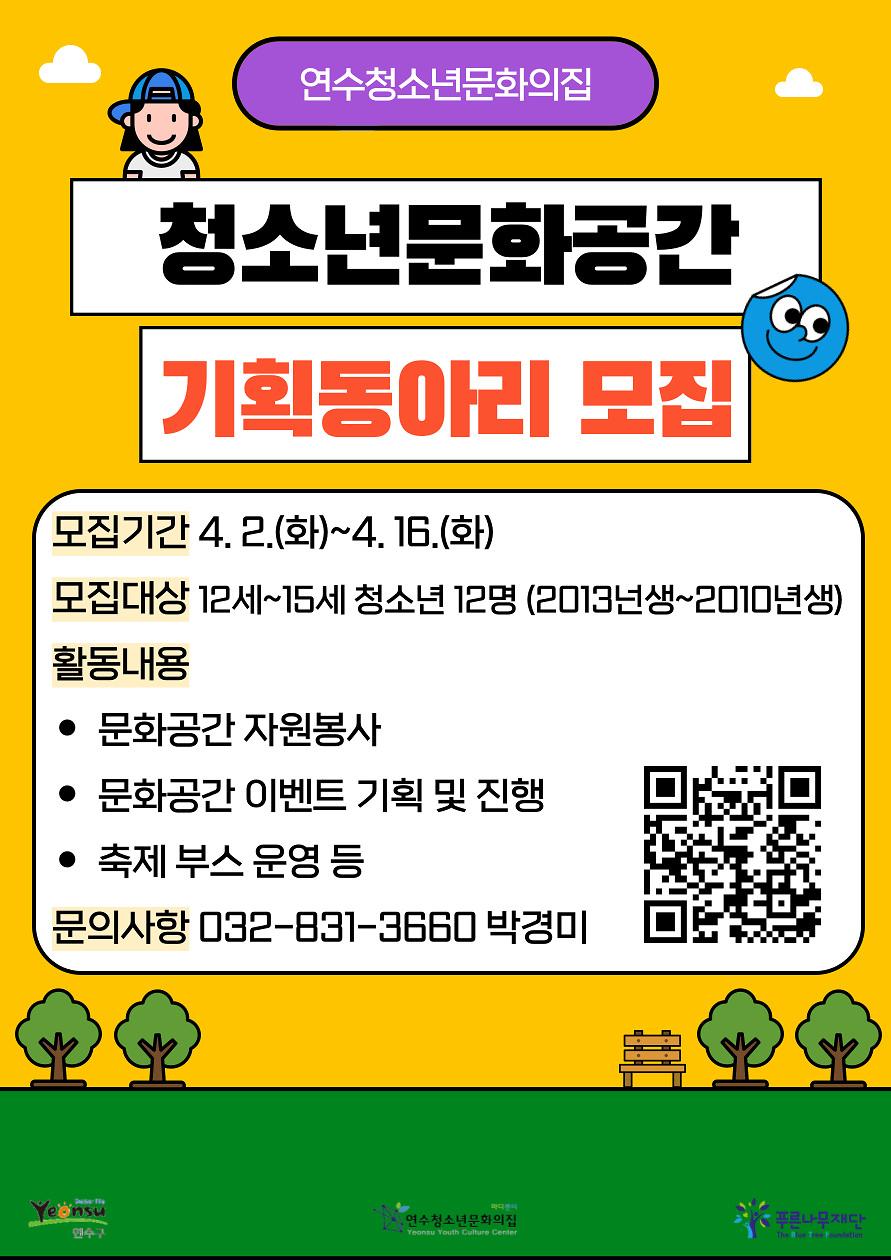 [연수청소년문화의집] 2024년 청소년문화공간 기획동아리 모집