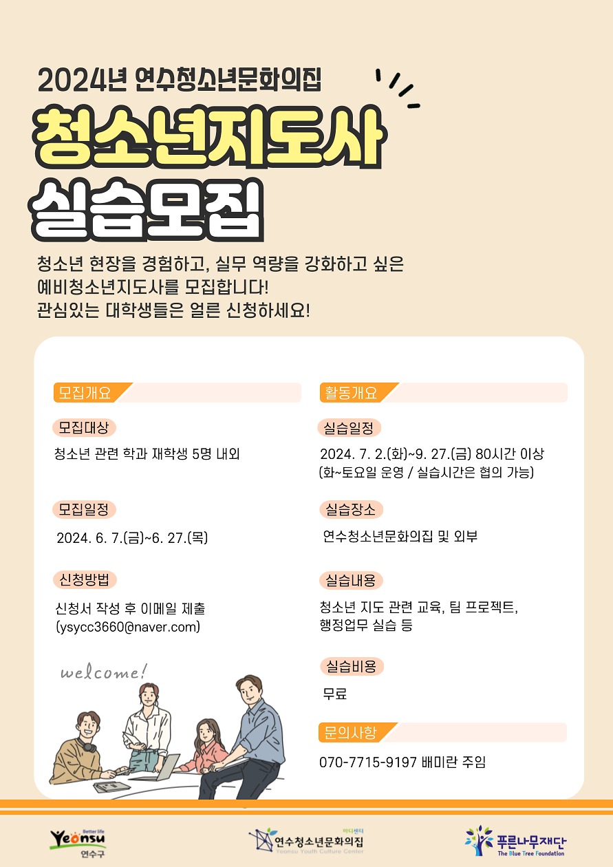 [연수청소년문화의집] 2024년 청소년지도사실습 모집