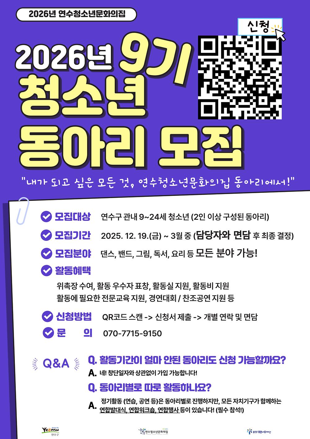 [연수청소년문화의집] 2026년 청소년동아리 신규 모집