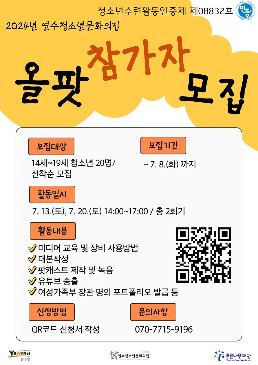 [연수청소년문화의집] 2024년 청소년수련활동인증프로그램 올팟