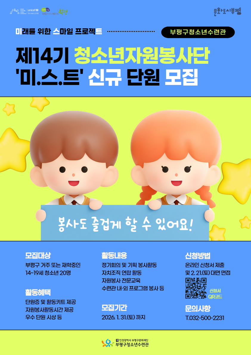[부평구청소년수련관] 2026 제14기 청소년자원봉사단 미.스.트 단원 모집