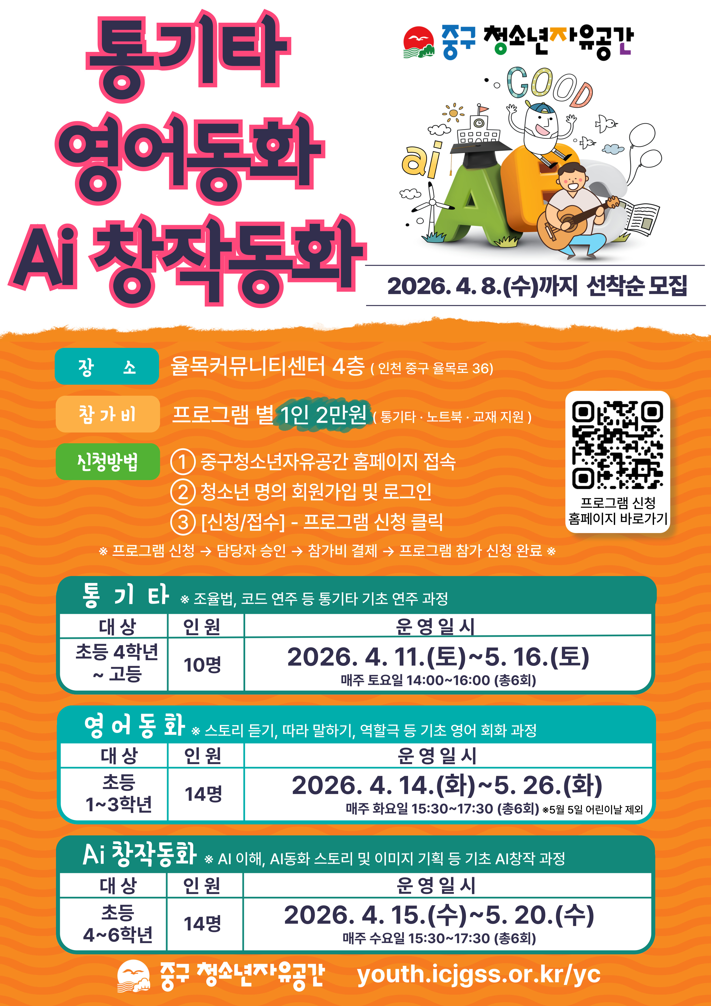 [중구청소년자유공간]통기타 및 미술 프로그램 참가자 모집