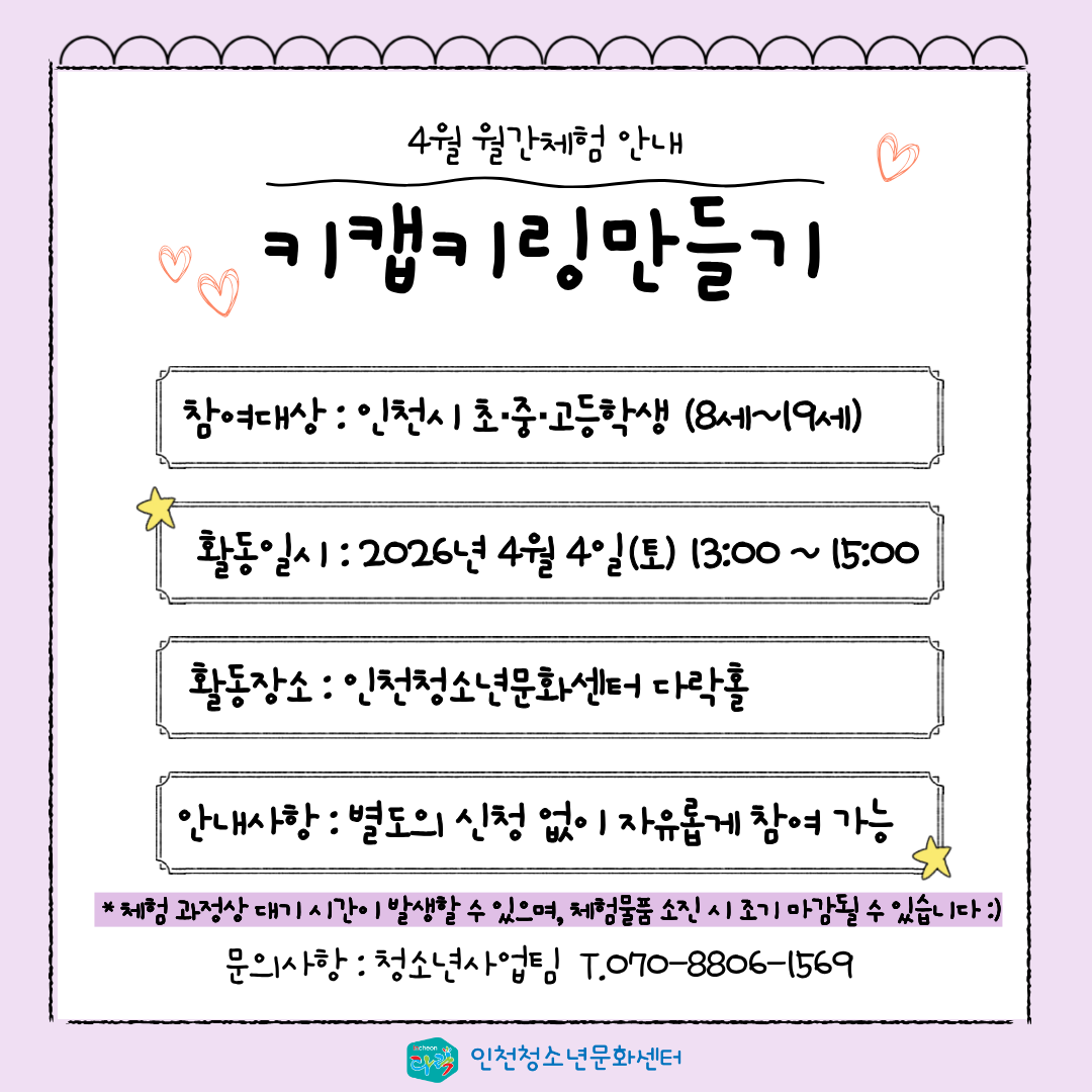 💛 참여대상 : 인천시 초•중·고등학생 (8세~19세 청소년)
