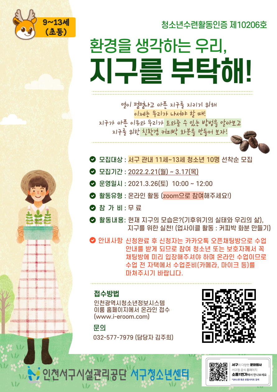 청소년수련활동인증 제11652호 리사이클링 그린드로잉 프로그램 참여자 모집