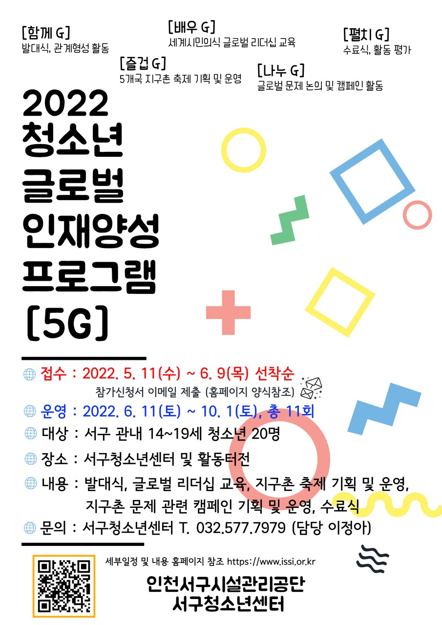 [모집연장!] 서구청소년센터 2022. 글로벌 인재양성 프로그램 [5G] 참가자 모집 (14-19세/무료)