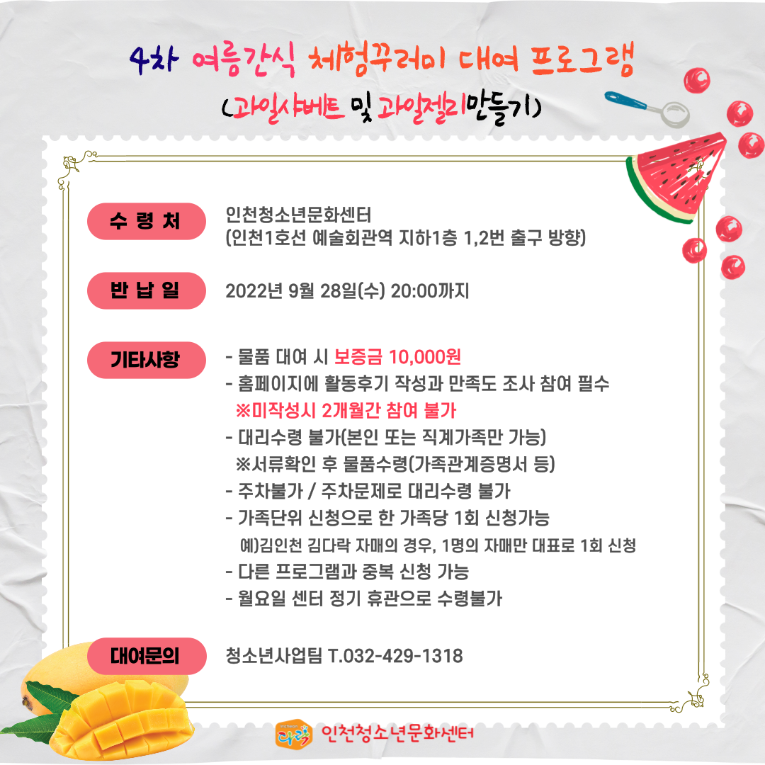 4차 여름간식 체험꾸러미 대여프로그램 참여자 모집