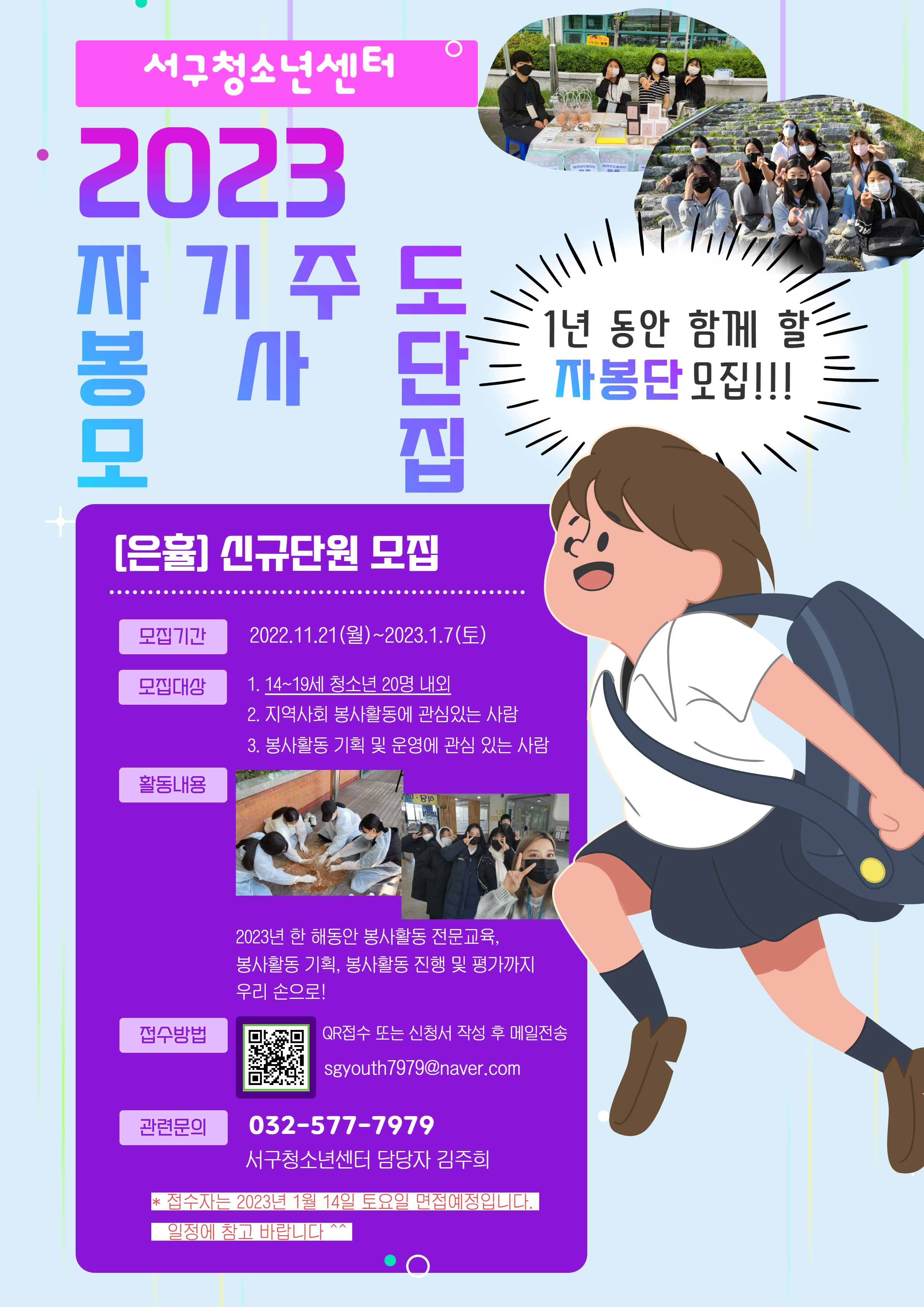 [서구청소년센터] 청소년자기주도봉사단 은휼 모집