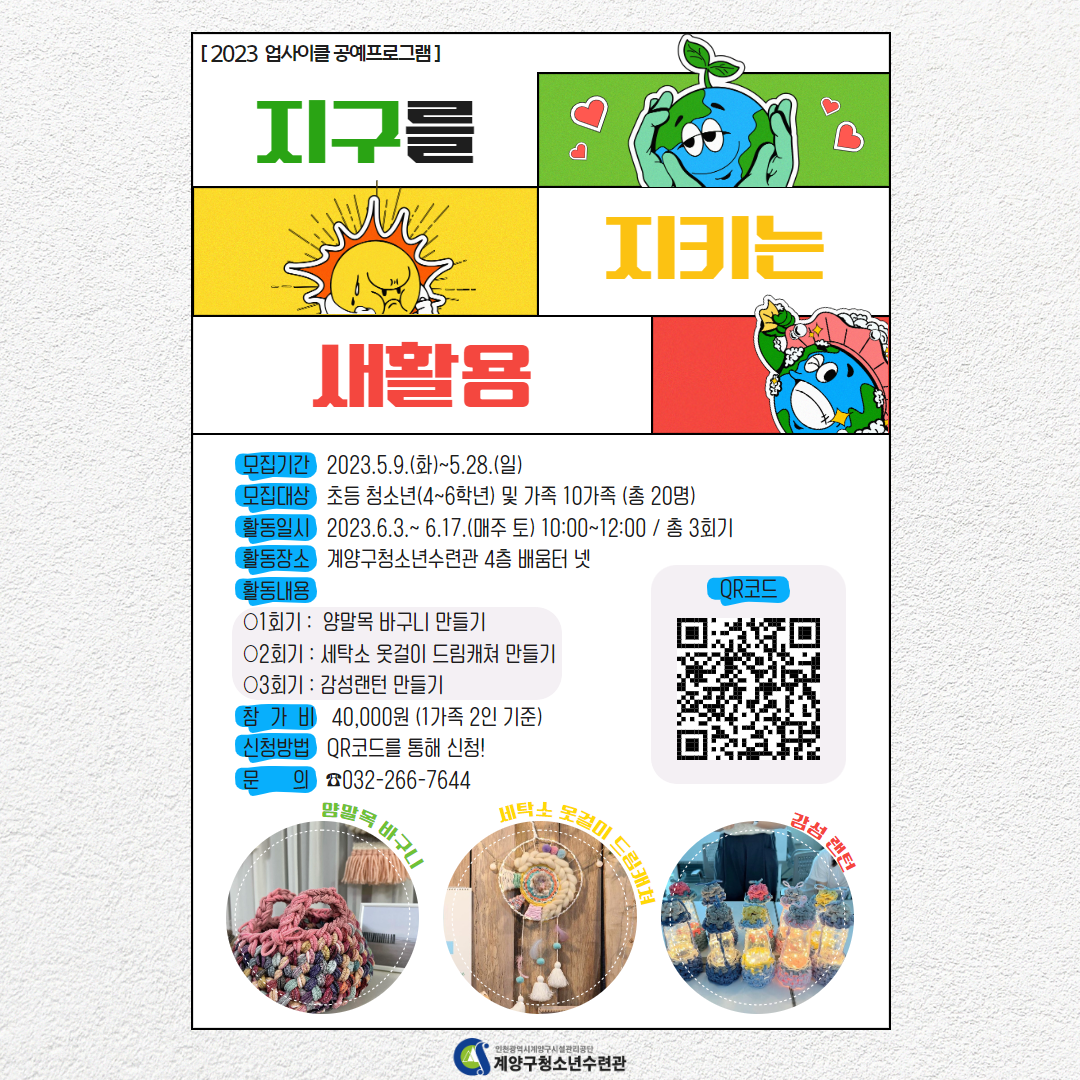 『지구를 지키는 새활용』은 업사이클 공예프로그램으로 총 3회기로 진행되며