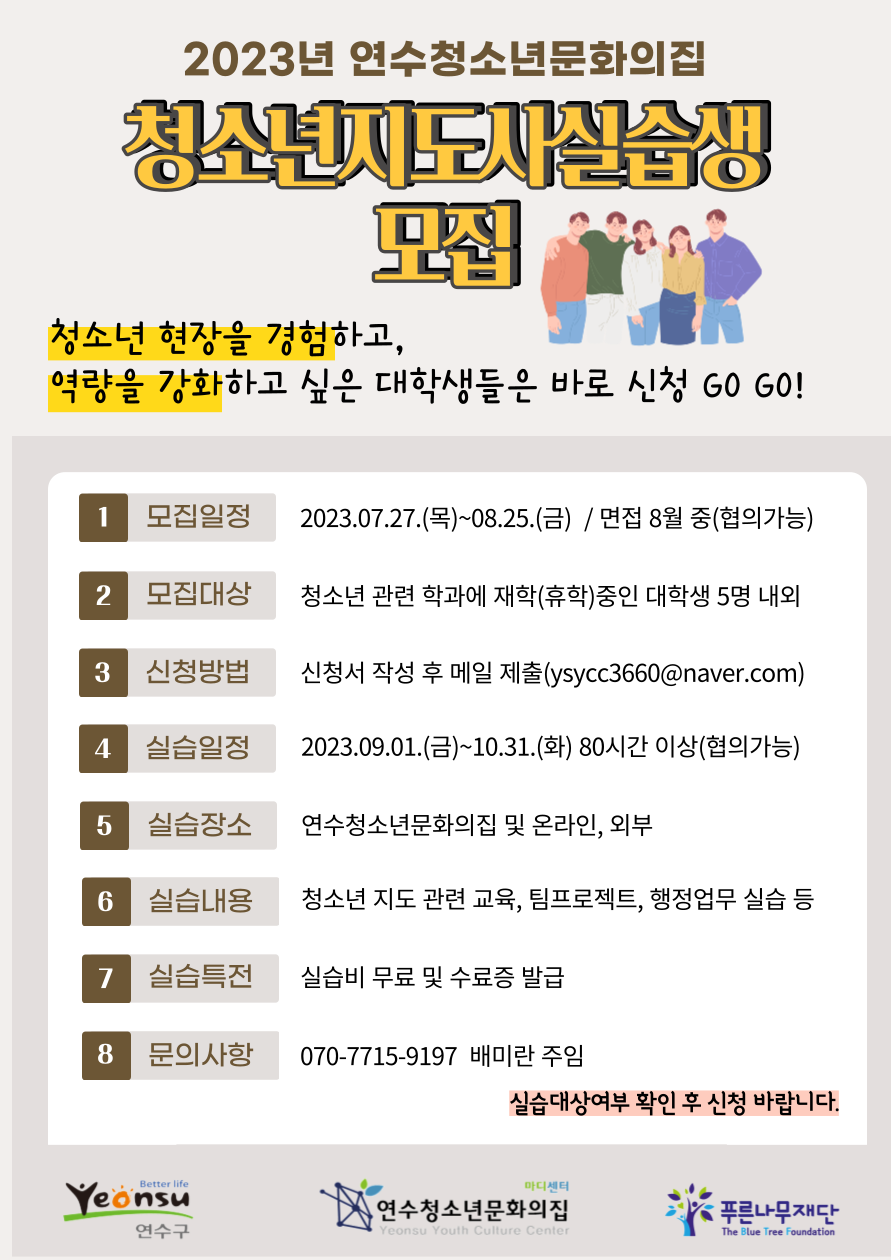 ◆연수청소년문화의집 2023년 청소년지도사실습생 모집◆