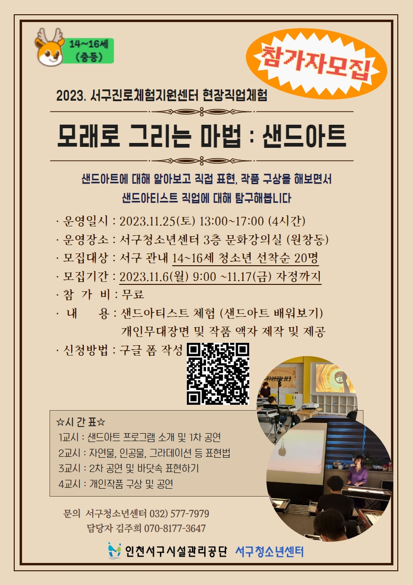 서구청소년센터(서구진로체험지원센터) 현장직업체험 모래로 그리는 마법 : 샌드아트 참가자 모집