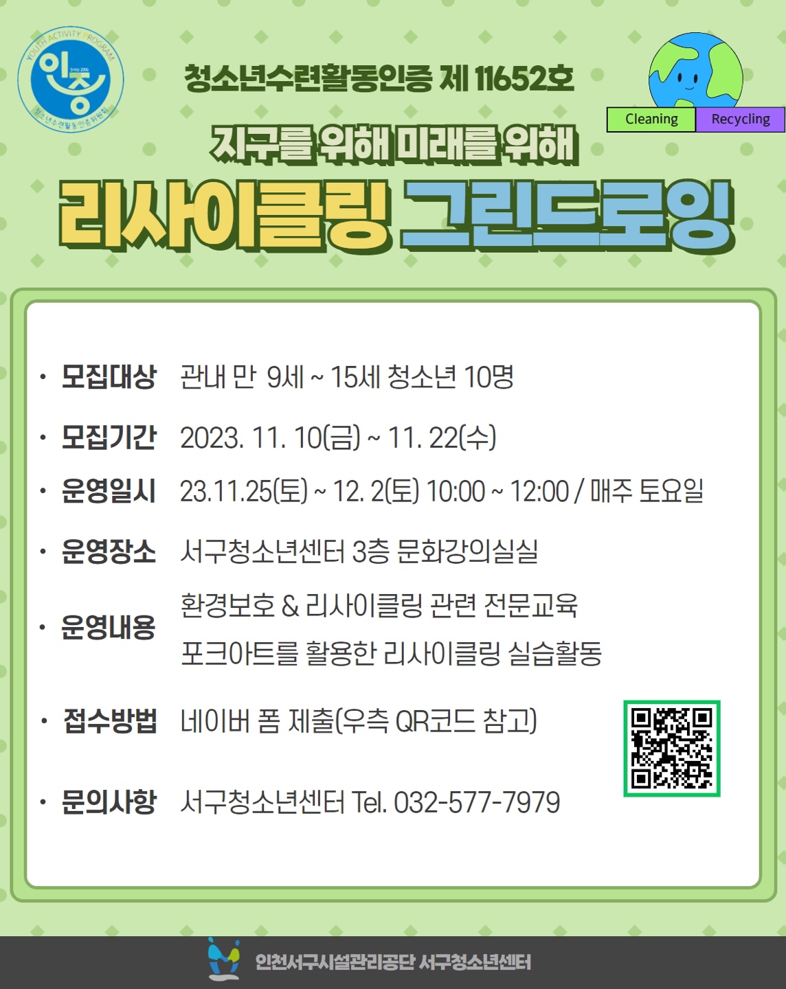 청소년수련활동인증 제11652호 리사이클링 그린드로잉 프로그램 참여자 모집