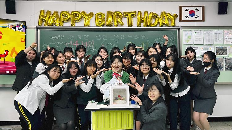 담임 선생님의 생신이셔서 저희가 직접 주문제작한 떡케이크와 함께 서프라이즈 파티를 한 날입니다!