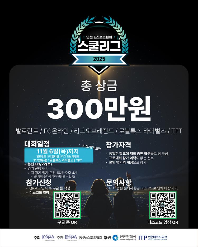 🏆 인천 e스포츠협회 2025 스쿨리그 참가자 모집! 🎮
