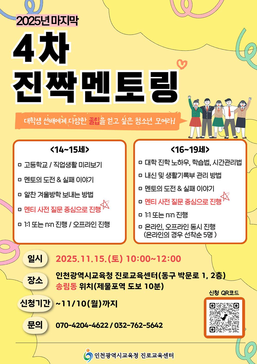 [인천광역시교육청 진로교육센터] 2025년 4차 진짝멘토링 참여 청소년 모집